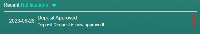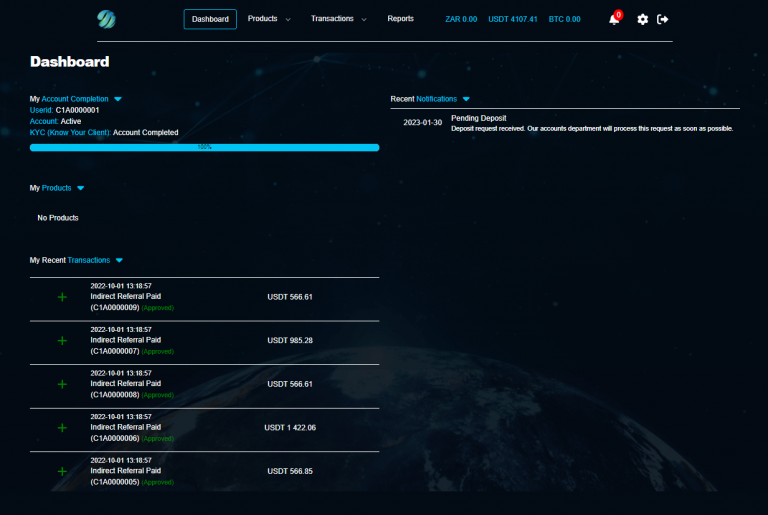 This displays recent activity on account (includes Registered,  KYC, deposits, exchanges, purchase of products, withdrawals etc.)